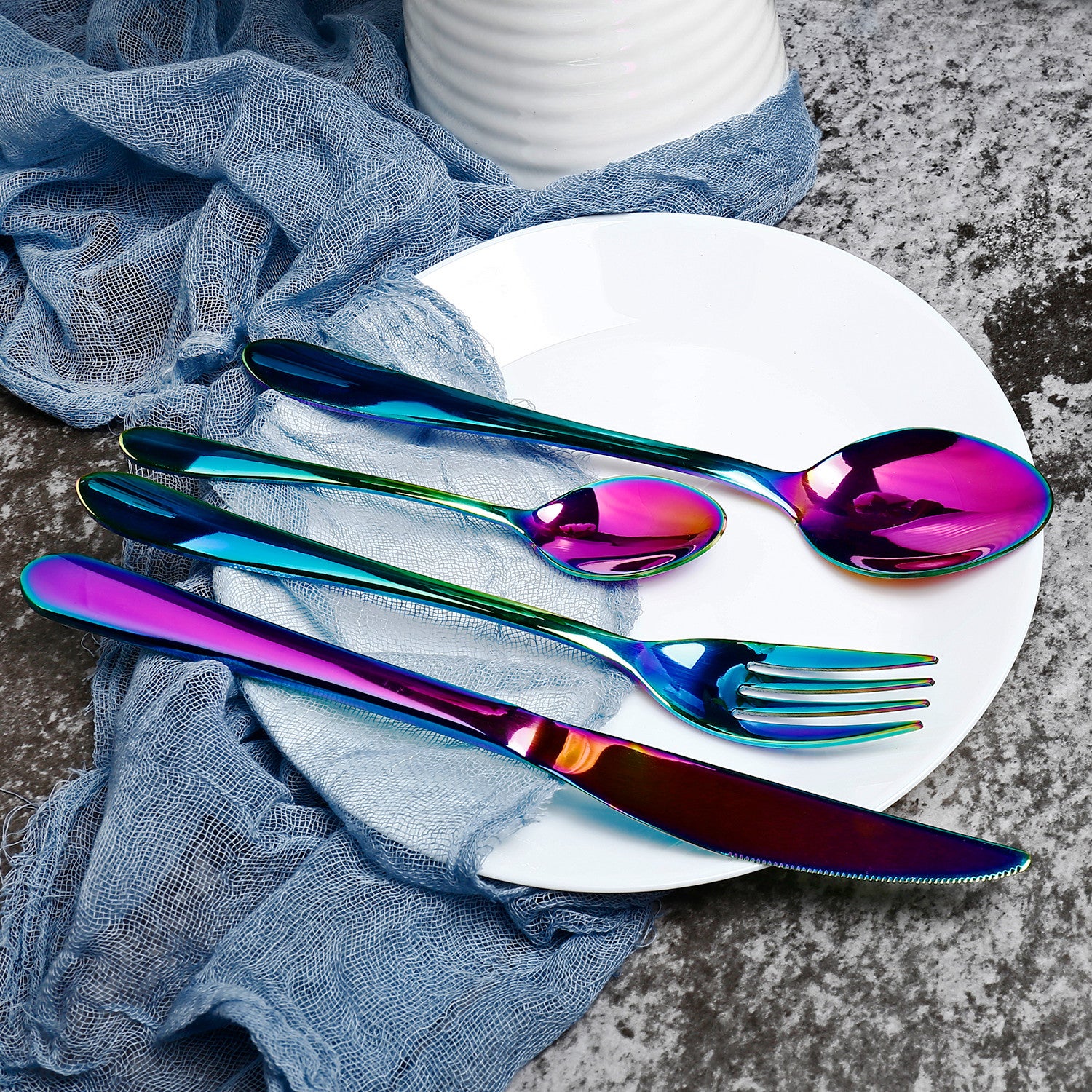 Met deze 24-delige regenboogkleurige bestekset maak jij van elk diner een feestje. Weer eens wat anders dan dat standaard zilveren bestek. Dit geeft naast een luxe ook een stoere en industriële look!