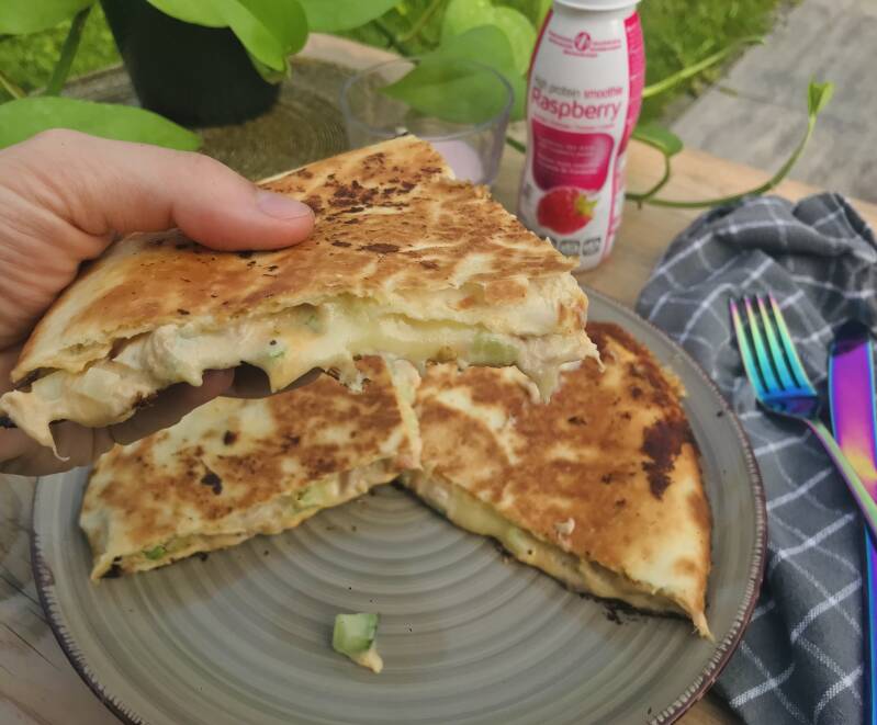 Snijd de quesadilla in 4 gelijke stukken en geniet van je creatie!