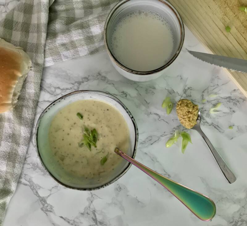 OOh echt een heerlijk romige soep! 🥰Je kan hem zo pittig maken als je zelf wil door extra mosterd toe te voegen. 🔥Hmmm ik hou er van. 👩🍳