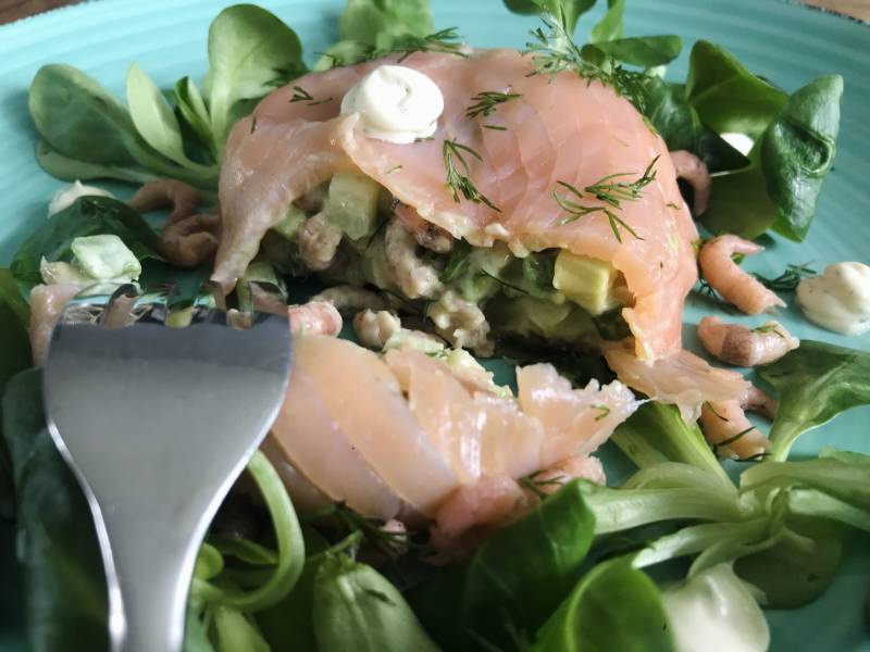 Heerlijk deze zambonbon. Smaakt lekker fris met de appel die in de vulling zit en het zuurtje van de dille mayonaise maakt het echt af. Wanneer je echt een vis liefhebber bent is dit het perfecte voorgerechtje. Jammmieeee.